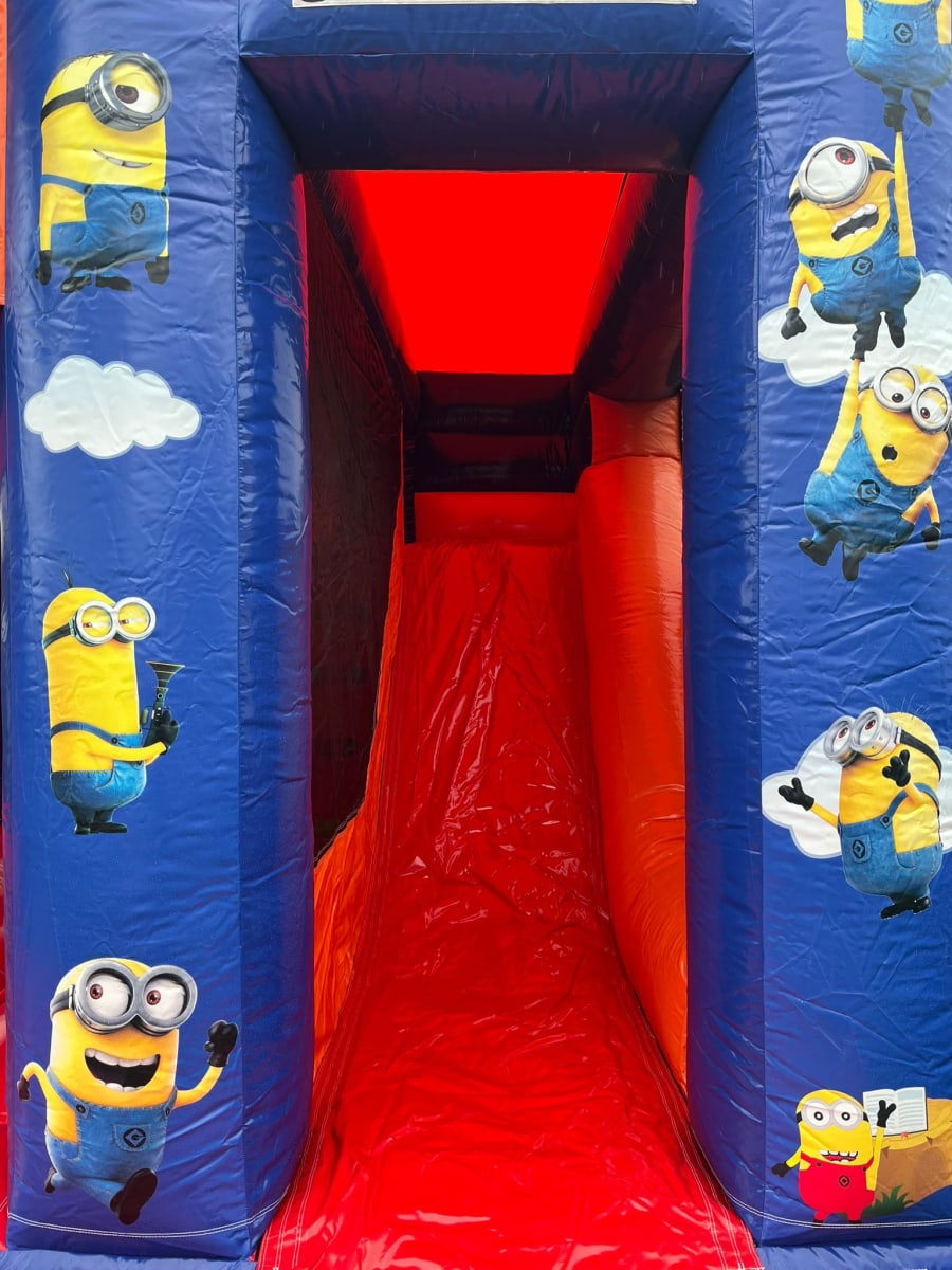 Let the children go bananas with our superb Minions 3D Combi! Brand new for 2023, this combi unit has everything to offer, it contains a large and spacious bouncing area and an 8ft high platform slide so the kids can bounce and slide all day long. The 3D Minions character up top is very eye-catching and sets it apart from other bouncy castles on the market. This unit also features digitally printed Minions-themed artwork. Book now to avoid disappointment and make your party or special event one to remember!