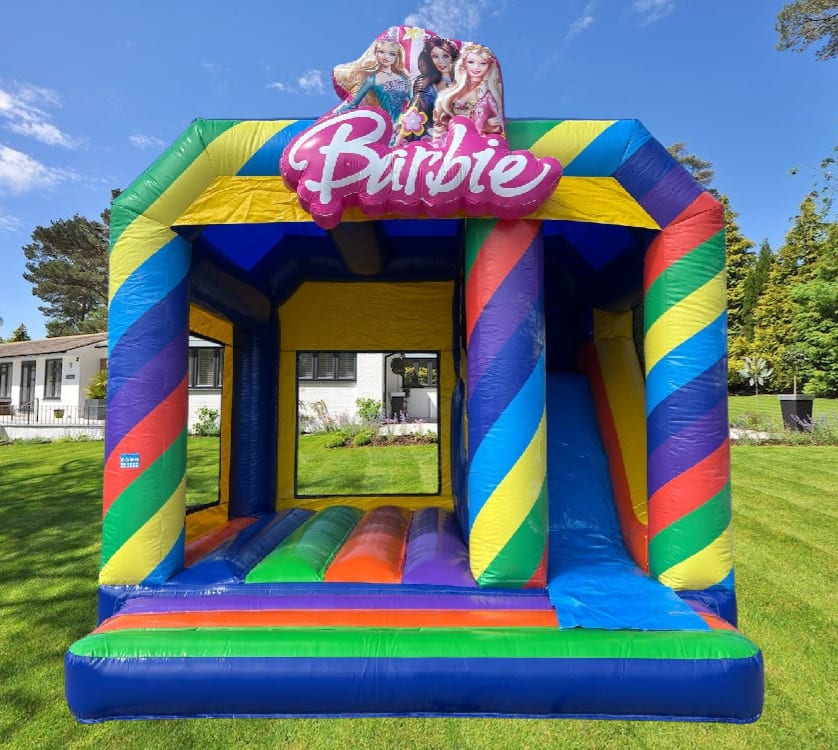 Our Barbie 3D Combi is a perfect addition to any party or event. Bringing the visual wow-factor to any celebration due to its vibrant multicoloured design and featuring a large bouncing area with an 8ft high slide inside, this combi is going to be to be the standout centrepiece of your party!