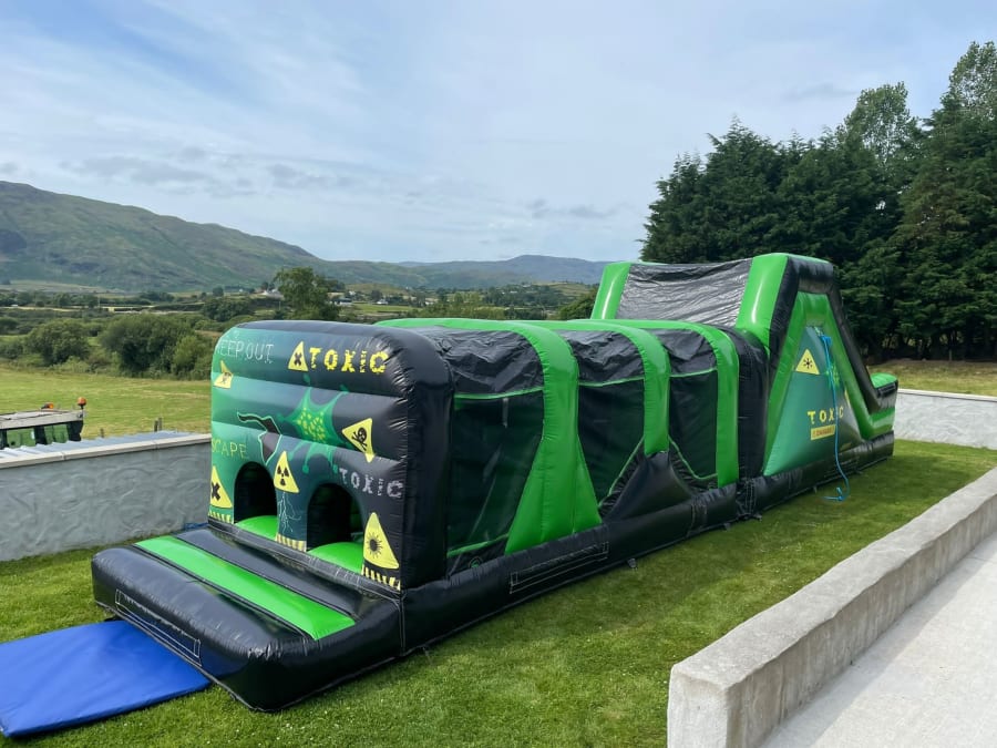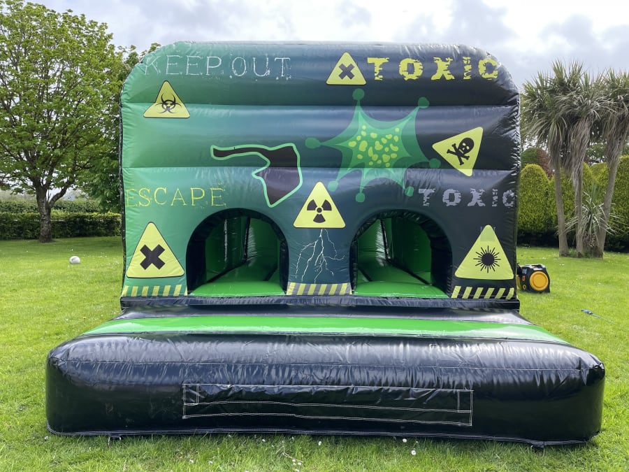 Our 42ft Green Toxic Obstacle Course is guaranteed to be a huge hit. Brand new for 2022 this large inflatable features everything you have come to expect from an obstacle course, including; bish-bash areas, a rock climbing wall with a 7ft platform slide and much much more! What better way to celebrate than watching the kids go wild crawling, bouncing, climbing and sliding for hours.