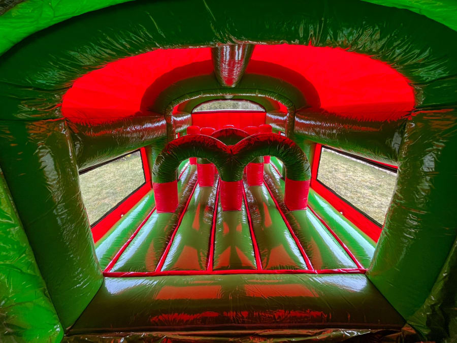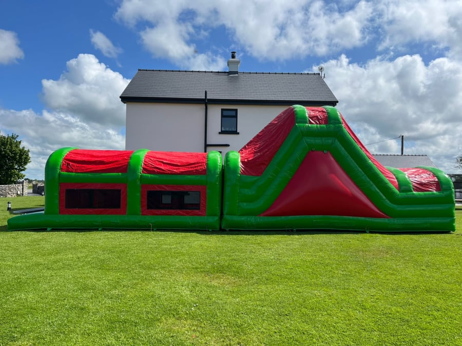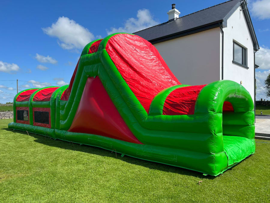 This 50ft Mayo High Slide Obstacle Course is brand new for 2023! Sharing the same design as our extremely popular 50ft Thriller High Slide Obstacle Course, we know it's going to be a huge hit. It features a 10ft high platform slide, loads of obstacles inside and room for bouncing. But best of all, it comes in a green and red colour scheme, making it the perfect choice for all those Mayo fans out there!